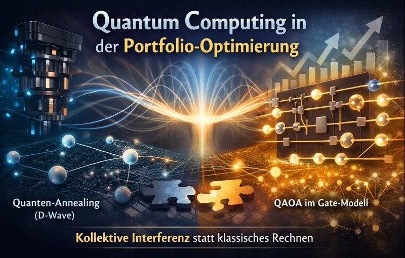 Kurzfassung: Der Beitrag beschreibt, wie sich eine Aktien Portfolioauswahl als Optimierungsproblem formulieren lässt: Ein Bitstring codiert, welche Titel im Portfolio sind, und eine Zielfunktion balanciert Risiko gegen erwartete Rendite. Darauf aufbauend werden zwei Quantenwege gegenübergestellt: Quantum Annealing (z. B. D-Wave) liefert durch einen kontinuierlichen Übergang von Exploration zu Problem schnell viele Kandidatenportfolios als Samples, während QAOA im Gate-Modell über einen parametrierten Schaltkreis Interferenz nutzt, um gute Bitstrings wahrscheinlicher zu machen. Beide Methoden suchen nicht magisch die perfekte Lösung, sondern erkunden denselben Lösungsraum mit unterschiedlichen physikalischen Mechanismen und Auswerteformen. Der Text argumentiert, dass Quantum Computing weniger als Rechnen im klassischen Sinn verstanden werden kann, sondern eher als kollektiver Interferenz- und Resonanzprozess, der Strukturen im Lösungsraum verstärkt.